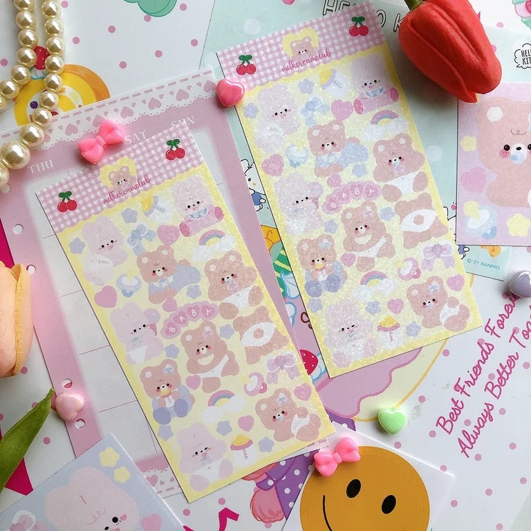 ✿ water resistant kiss-cut holo sparkle removable sticker sheet
