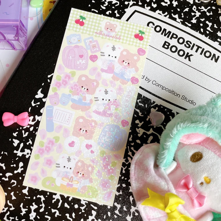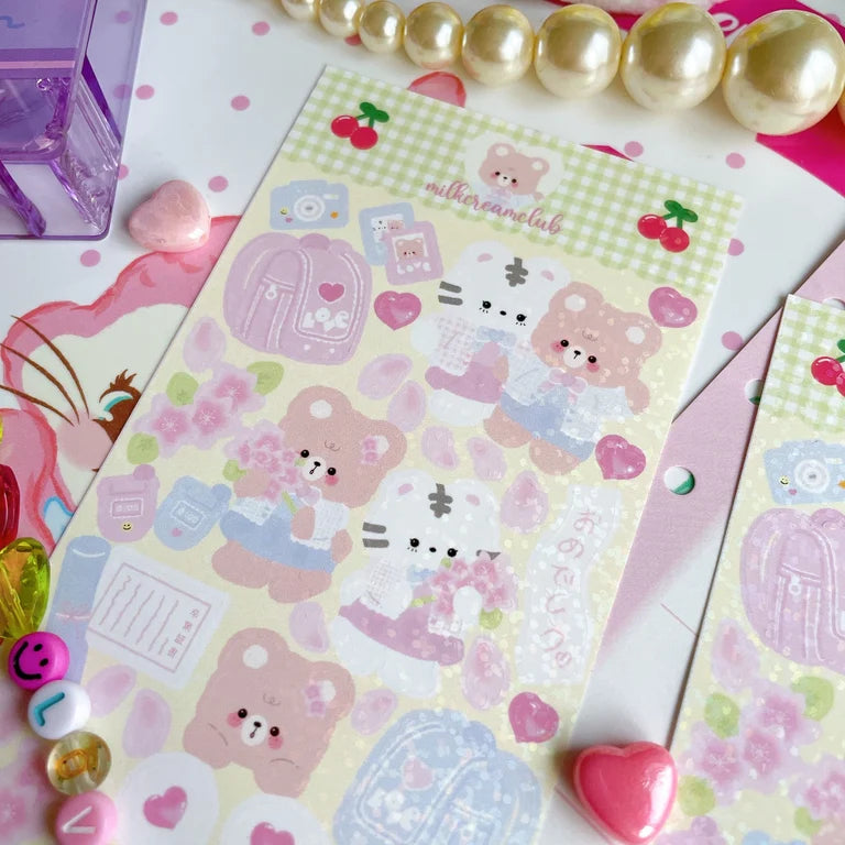 ✿ water resistant kiss-cut holo sparkle removable sticker sheet