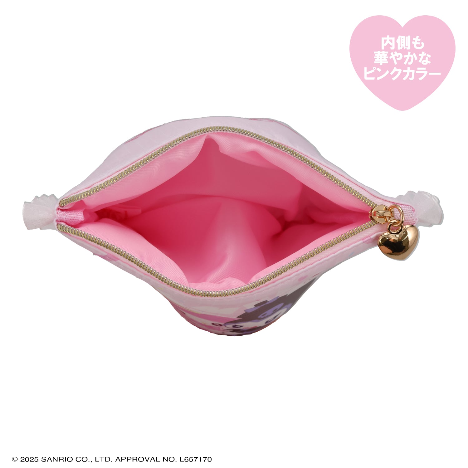 With a cute heart charm on the zipper!